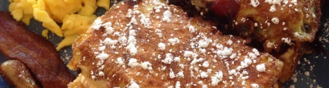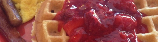 Our popular Belgian waffle made with coconut and topped with strawberry compote and coconut flakes – plus our normal Full House accouterments.