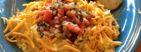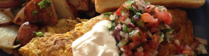 Topped with cheddar cheese, pico de gallo, and sour cream. Served with our famous homers and toast.